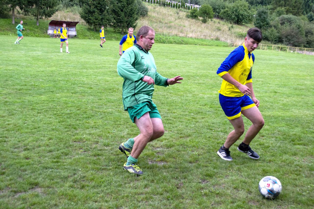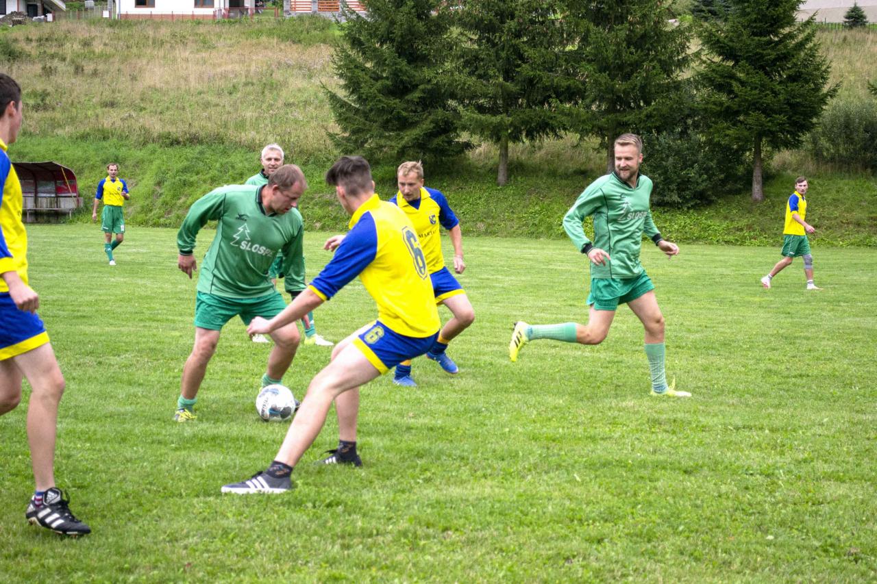 Zápas začal o 15.45 hod. Rozhodoval Laco K.. Po rozpačitom začiatku však mladí vyrovnanie atakovali ženatých. Súboj priniesli priniesol zaujímavý futbal. Bohatý bol na šance i na góly na oboch stranách Aký je priebežný stav stretnutia nevedel veľakrát ani rozhodca.