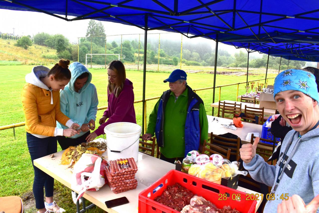 Prípravu vykonali dobrovoľníci z folklórneho súboru Choč, nechýbali ani párky, občerstvenie a aj zmrzlina.