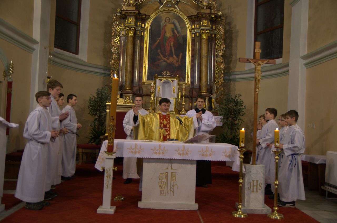 Aj tento rok sme slávili najväčšie kresťanské sviatky - Kristovo utrpenie, smrť i oslávenie. Na Zelený štvrtok sme si pripomenuli ustanovenie Eucharistie, ustanovenie sviatosti kňazstva a Pánovo prikázanie o bratskej láske. Na Veľký piatok sme spoločne rozjímali o utrpení a smrti nášho Pána, v sobotu po západe slnka sme vigílijnou svätou omšou oslávili jeho zmŕtvychvstanie.